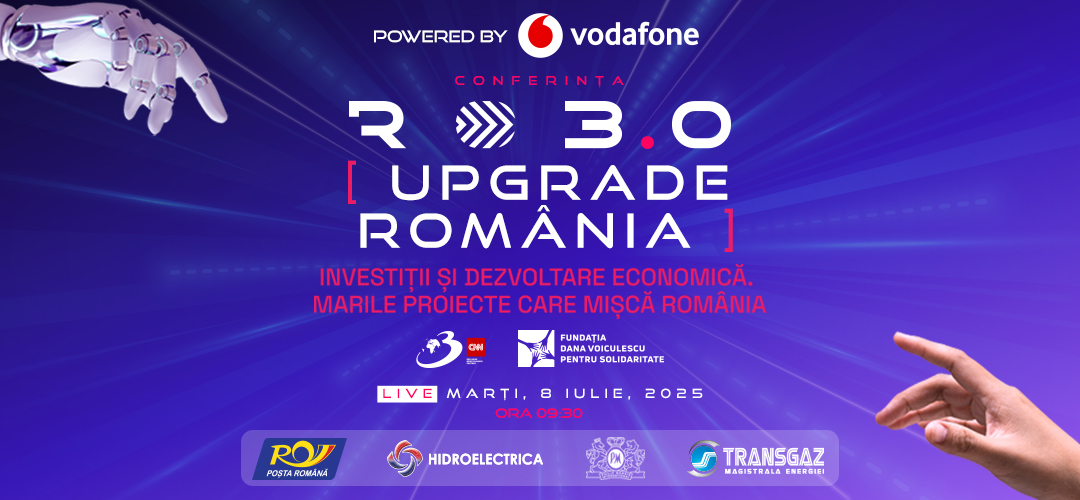 Antena 3 CNN organizează RO 3.0 UPGRADE România, un eveniment strategic dedicat viitorului economic al României. Într-o eră în care schimbările rapide și provocările globale modelează lumea în care trăim, acest eveniment își propune să adune lideri din mediul de afaceri, guvernamental și academic pentru a crea o viziune comună asupra dezvoltării economice a țării noastre.