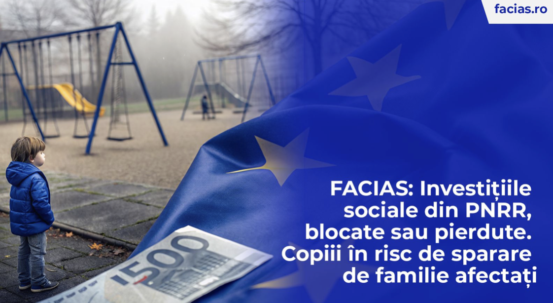 Peste o sută de centre sociale promise prin fondurile PNRR riscă să fie blocate, fie abandonate complet, iar România poate să piardă una dintre cele mai importante investiții sociale din ultimii ani garantate prin Planul Național de Redresare și Reziliență. Fundația pentru Apărarea Cetățenilor Împotriva Abuzurilor Statului (FACIAS) atrage atenția că întârzierea acestei investiții esențiale pune în pericol nu doar atragerea fondurilor europene, ci mai ales drepturile copiilor aflați în risc de separare de familie.