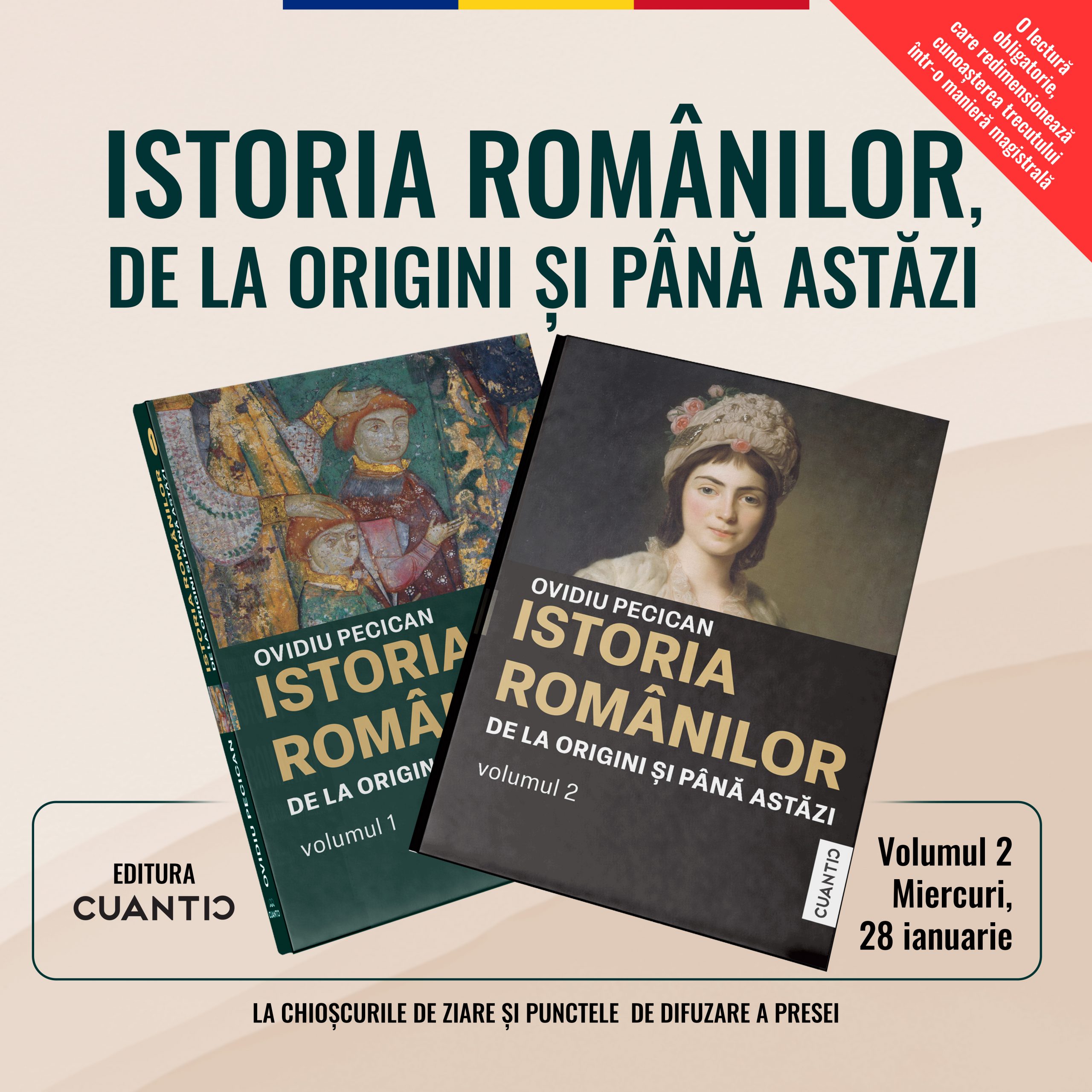 Volumul 2 din „Istoria românilor, de la origini și până astăzi” este o lectură obligatorie pentru cei care doresc să înțeleagă trecutul românesc în toată complexitatea lui. Volumul 2 apare miercuri, 28 ianuarie, la chioșcuri și la toate punctele de difuzare a presei. Preț: 55 lei.