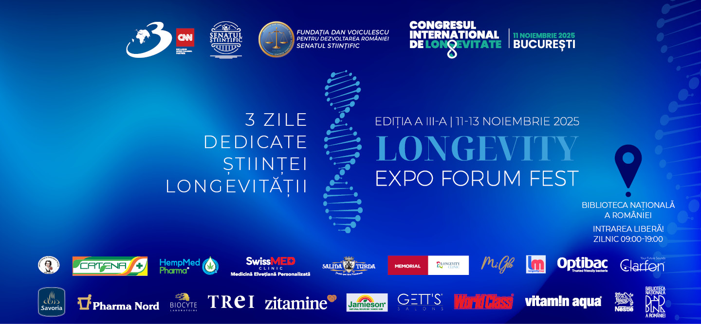 Astăzi, mai mult ca oricând, sănătatea a devenit o prioritate globală, iar România se aliniază marilor tendinţe internaţionale printr-un eveniment unic: Longevity Expo Forum Fest, ajuns la cea de-a treia ediţie. Timp de trei zile, Biblioteca Naţională a României devine centrul unei mişcări care uneşte ştiinţa, tehnologia şi wellness-ul într-un dialog dedicat longevităţii şi calităţii vieţii.