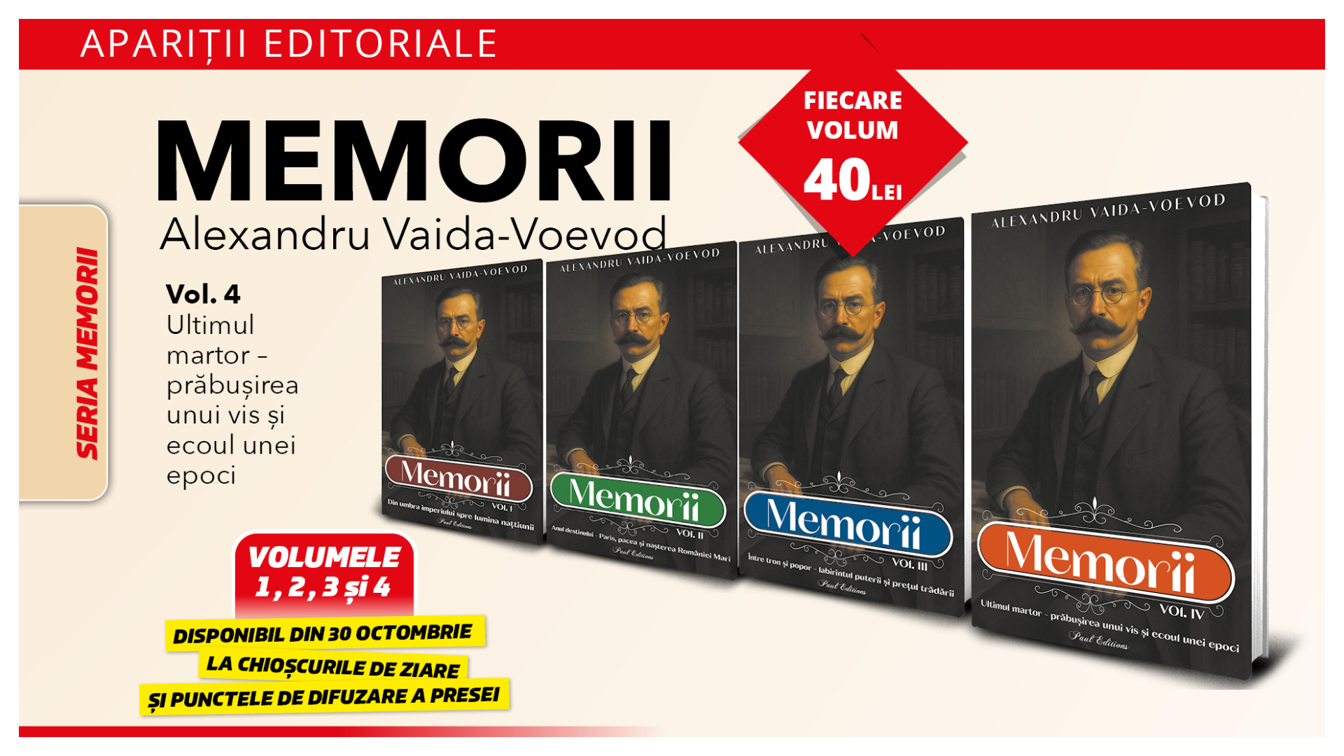 După trei volume care au surprins formarea idealului național, lupta diplomatică de la Paris și tensiunile puterii interbelice, cel de-al patrulea și ultimul volum din „Memoriile lui Alexandru Vaida-Voevod” încheie o mărturie istorică esențială despre destinul României moderne.