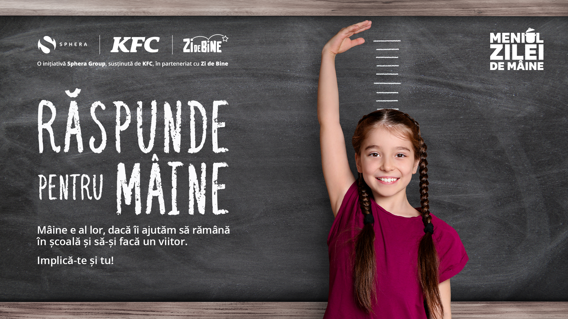 „Nu alegem unde să ne naștem. Iar uneori, mediul în care venim pe lume poate să limiteze, din start, șansele pe care le avem. Dar asta nu înseamnă că nu le putem extinde împreună. Prin Centrul Comunitar ZI de BINE și parteneriatul cu Sphera și KFC România, le oferim copiilor din Ferentari nu doar sprijin educațional și material, ci și un altfel de mesaj: Contezi. Poți. Suntem aici.