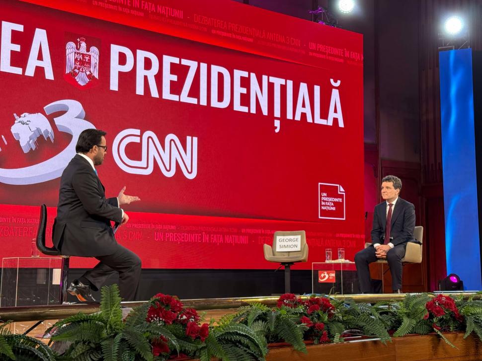 Antena 3 CNN a organizat, marţi seară, o dezbatere electorală, dar candidatul AUR, George Simion, nu s-a prezentat.