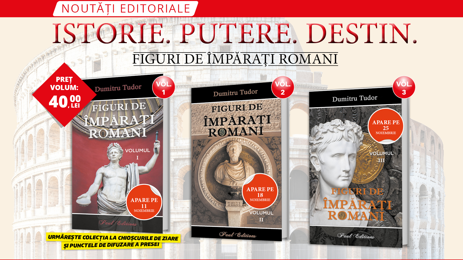 Editura Paul Editions aduce la chioșcurile de ziare o nouă colecție excepțională dedicată celei mai fascinante civilizații din istorie: Imperiul Roman. Sub semnătura reputatului istoric Dumitru Tudor, seria „Figuri de împărați romani” redă, într-un stil captivant, viața și destinul celor care au modelat lumea antică prin putere, viziune și ambiție.