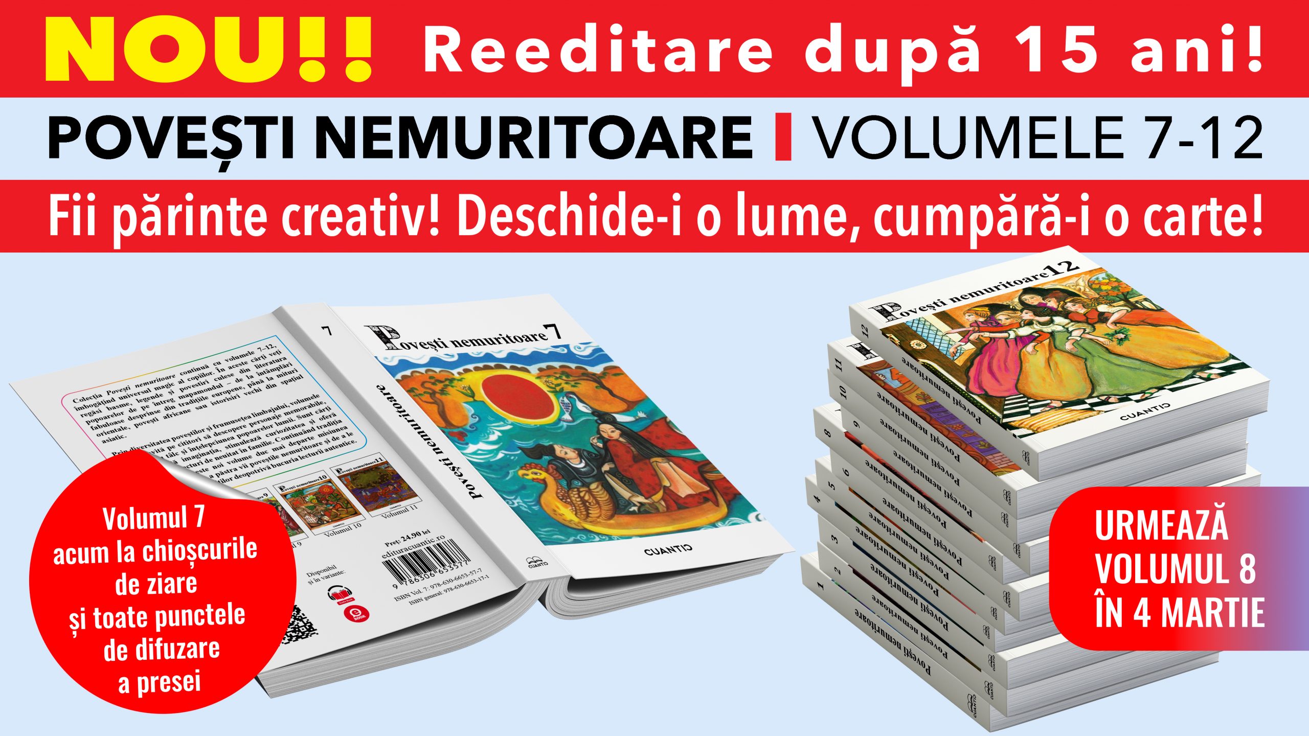 Reeditate după un deceniu și jumătate, volumele 7–12 din colecția „Povești nemuritoare” revin cu același farmec pentru micii cititori de astăzi. Mulți dintre noi am crescut cu ele în bibliotecă, citindu-le la lumina veiozei sau ascultându-le rostite de părinți înainte de culcare. Acum, aceste povești devin accesibile pentru noile generații de copii.