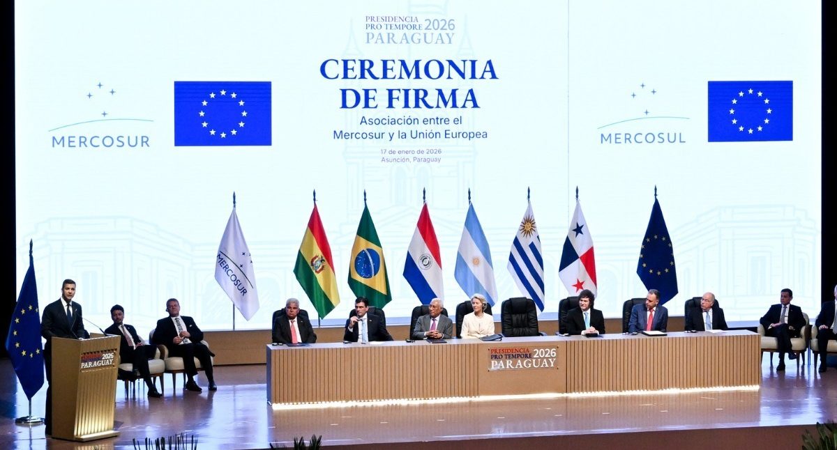 Uniunea Europeană și Mercosur au semnat sâmbătă la Asuncion, în Paraguay, un acord comercial istoric, marcând finalul a 25 de ani de negocieri între UE și statele Mercosur și crearea oficială a uneia dintre cele mai mari zone de liber schimb din lume, cu peste 700 de milioane de locuitori, reprezentând 30% din PIB-ul global, relatează AFP.